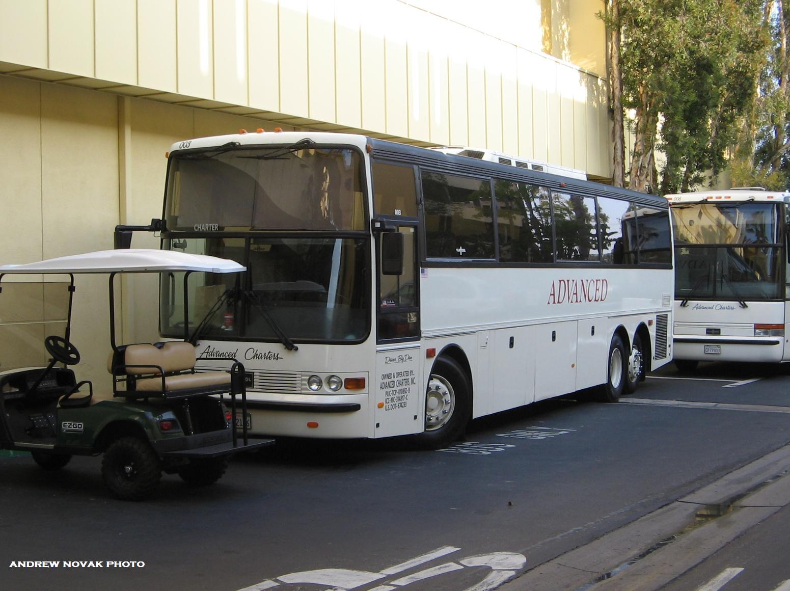 003 Advanced Charters Van Hool behind the Paradise Pier Hotel in Anaheim on May 7, 2006. (Andrew Novak Photo)