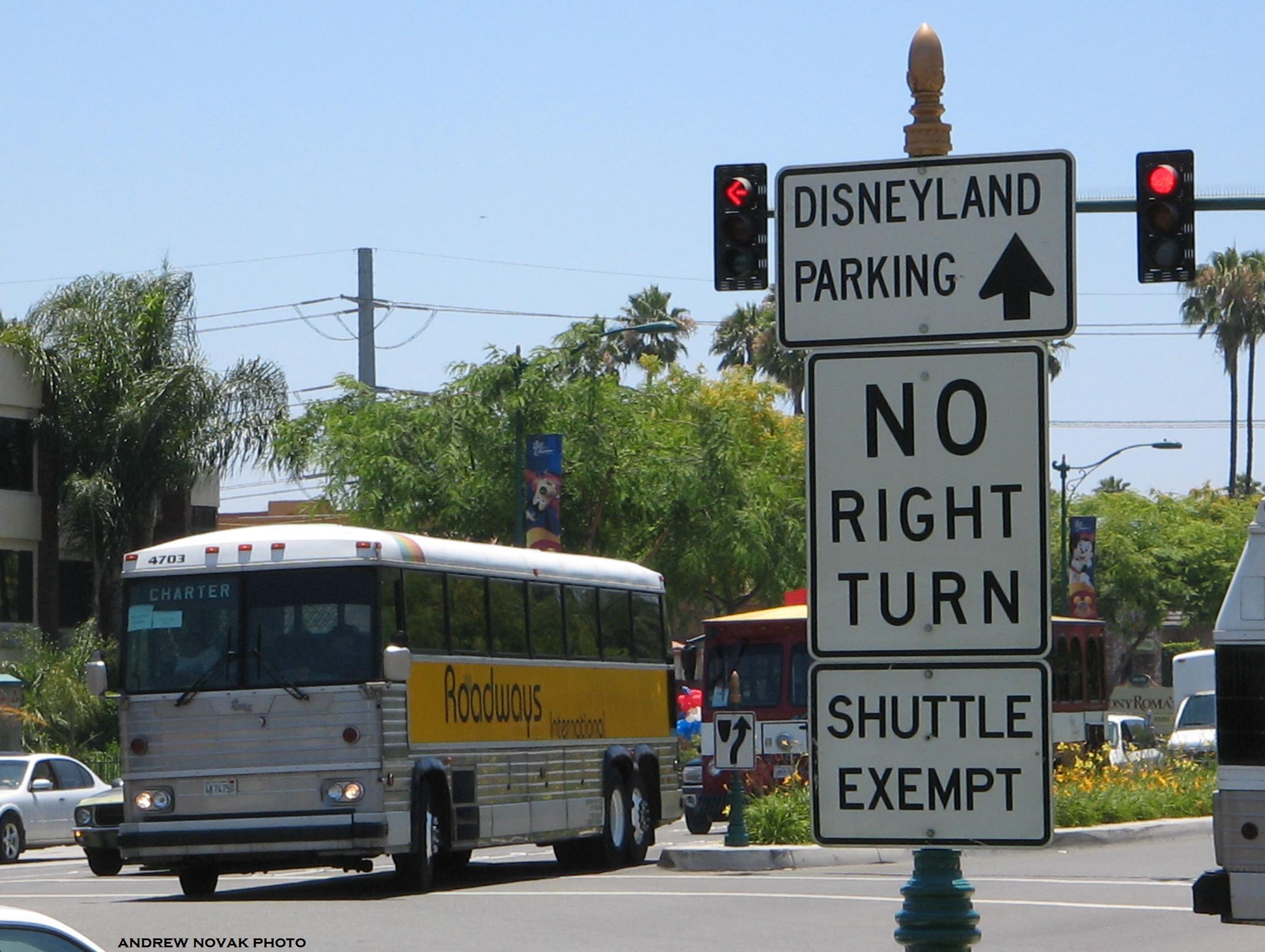 4703 TMC MC-9 on Harbor Boulevard outside East Shuttle Area of Disneyland on July 4, 2005. This bus is from Marin Airporter. (Andrew Novak Photo)