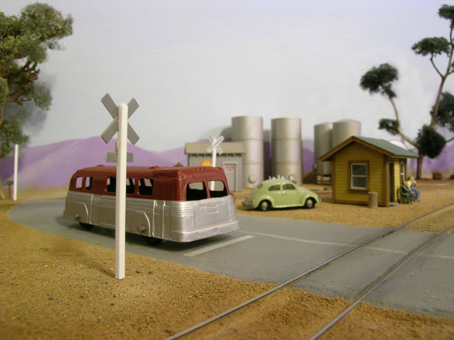 On August 15, 2009 I attended an estate sale sponsored by the Glendale Model Railroad Club. One of the things I purchased was a Tootsie Toy bus designed to look like a Twin Coach bus. At the same sale my dad purchased some buildings that came from Whit Towers' Alturas and Lone Pine (ALP) railroad. As my dad searched model magazines to find pictures of the buildings he bought, he found a picture that showed my Tootsie Toy bus on the ALP. I now own a piece of this historic model railroad.